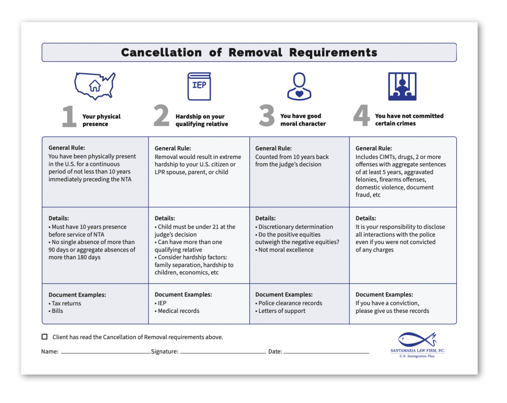 Cancellation of Removal Requirements Document: